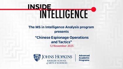 Join MS in Intelligence Analysis Program Director Michael Ard as he hosts Nicholas Eftimiades, assistant teaching professor of homeland security at Penn State Harrisburg's School of Public Affairs, for a discussion on "Chinese Espionage Operations and Tactics."